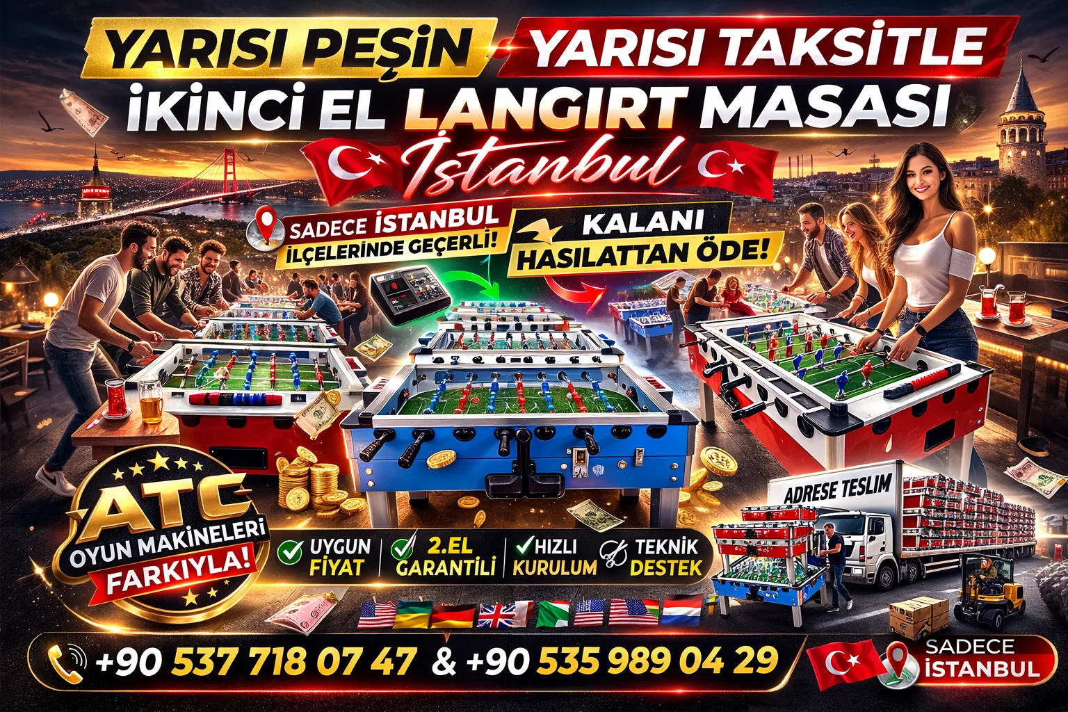 ATC Oyun Makineleri farkıyla sunulan ikinci el langırt masaları şimdi yarısı peşin – yarısı hasılattan ödeme avantajıyla sizlerle!